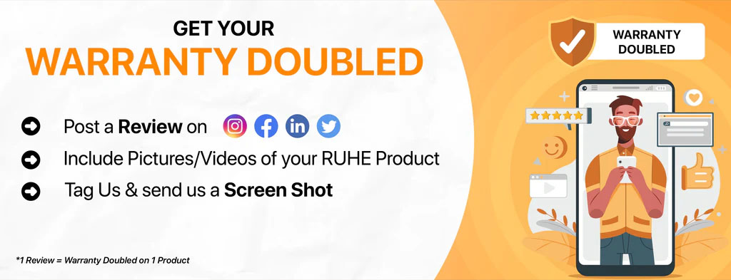 16. The warranty doesn’t cover any accessories external to the product. After completion of one year, in case/s other than manufacturing defects found in RUHE products, standard labour and parts charges will be collected from customers, as per prevailing rates of the company.